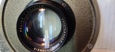 CON Woigtlander Braunschweig ELIAR 4,5/21 cm In ottime condizioni. Montato su piantone da 8 cm ed alto 1,65. Ingombro 65 ,base 60x50.Soffietto da 17 chiuso ad 60 aperto al max. Privo di vetro ( sono alla ricerca ) smerigliato. Diversi Formati. Oggetto non spedibile , quindi spedizione e/o consegna a cura dell'acquirente. Soffietto ricondizionato così come tutto l'oggetto .