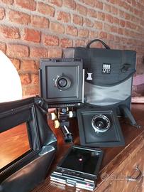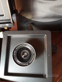 Vendo banco ottico Arca Swiss 4x5 compatto e leggero, in bellissime condizioni, completo di obiettivo stardard e obiettivo grandangolare con rispettivi soffietti + borsa originale per il trasporto.