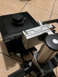 Banco ottico Sinar, acquistato da un collezionista, utilizzato una sola volta. Vendo completo di accessori come da foto, baule e chassis doppi inclusi. Contattare solo se realmente interessati. Ritiro a mano