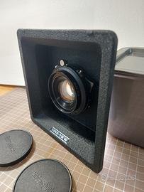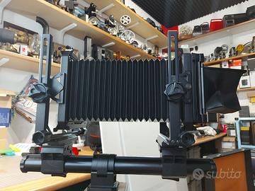 Vendo Banco Ottico TOYO 45 C completo di piastre e ottica RODENSTOCK GERONAR 90mm. con piastra TOYO - soffietto estensibile per tutta la lunghezza del banco e soffietto in pelle per grandangolare - Quick Roll Slider II per adattare porta pellicole 120 (non compreso) - scatto flessibile - completo di valigia rigida ed imballi originali. Il cavalletto non è in vendita. Solo ritiro a mano zona nord di Milano.