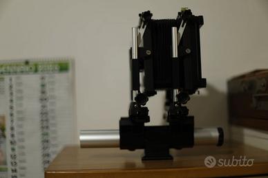 Banco ottico Toyo 9x12cm 4x5 per pellicola piana, soffietto e movimenti in buone condizioni. Vendo senza ottica o volendo vendo a parte ottica e chassis.