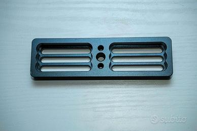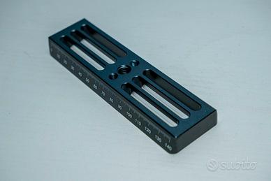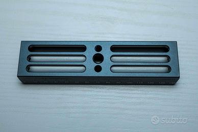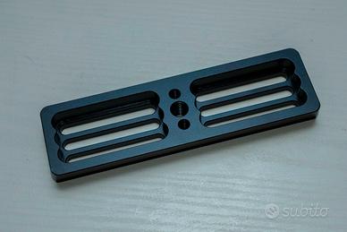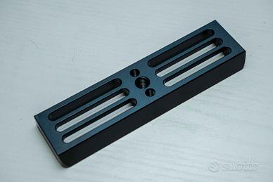 Come da titolo vendo barra vixen con fori passanti e asole da 150mm con riferimenti stampigliati. Al centro presenta due fori filettati m6 e uno da 3/8. Colore nero.