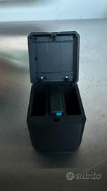 Vendo batteria originale Insta360 ONE X nera con il box caricatore. Il caricatore è compatto e carica contemporaneamente 3 batterie.