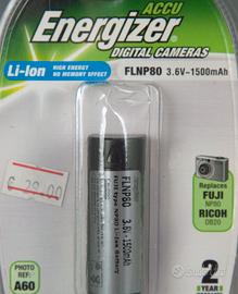 Batteria per fotocamere digitali ; Enegizer Li-ion FLNP 80 V.3,6 mAh 1500 . confezione sigillata . Possibile ritiro diretto .