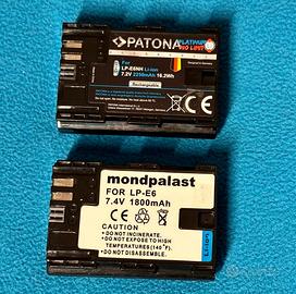 Batterie compatibili Canon LP-E6NH 1. PATONA Platinum da 2.250 mAh Li-ION 2. MONDPALAST (marchio Amazon) da 1.800 mAh Li-ION Entrambe usate pochissimo (5/6 cicli di ricarica al massimo) perfettamente funzionanti. Compatibili con i seguenti modelli: EOS R5 EOS R6 EOS 5D Mark IV EOS 6D Mark II EOS R5 C EOS 90D EOS 5Ds EOS R EOS 5D Mark III EOS 5D Mark II EOS Ra EOS 6D EOS 7D Mark II EOS 7D EOS 5Ds R EOS 80D EOS 70D EOS 60Da EOS 60D EOS R7 EOS R6 Mark II EOS C50