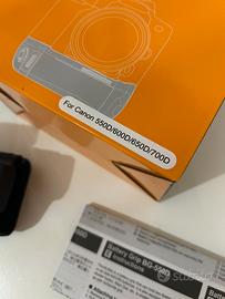 Battery grip compatibile con Canon 550D, 600D, 650D e 700D. Si possono usare sia due batterie contemporaneamente, per una lunga durata o 4 batterie stilo, a seconda dell'accessorio usato.