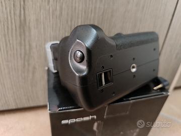 Battery grip per Nikon D3100, D3200 e D3300. in ottime condizioni con tasto per scatto laterale con collegamento tramite cavetto. Possibilità di inserire 2 batterie.