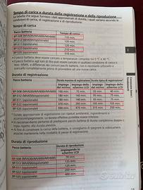 Per i tempi di ricarica e le durate in registrazione/riproduzione vedere l’immagine con la foto del manuale.