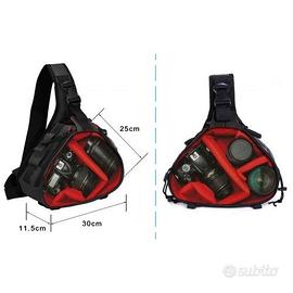 Zaino/borsa professionale a triangolo per fotocamere reflex o digitali. Impermeabile marca "Beaspire" Tasche a rete laterali, cinghie e divisori interni regolabili. Spessore antiurto da 10 mm, cerniera a sgancio rapido. Dimensioni: 31 cm x 24 cm x 5 cm Praticamente nuova, mai usata. ----------------------------- Spese di spedizione escluse