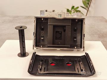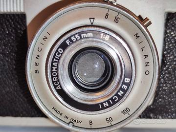 BENCINI KOROLL II, macchina fotografica vintage medio formato, 1962 analogica a pellicola 30x45 con custodia, in buono stato estetico e meccanico, nessuna riga o opacizzazione su obiettivo e nel pentaprisma del mirino (vedi foto e video), ma non testata con pellicola, macchina fotografica vintage anni ’60 “made in Italy” dalla Milanese Bencini (CMF) in alluminio pressofuso, la fotocamera è una medio formato 30x45mm su pellicola 120. La macchina appartiene a una collezione privata. SPEDIZIONE DISPONIBILE TRAMITE PIATTFORMA SU RICHIESTA