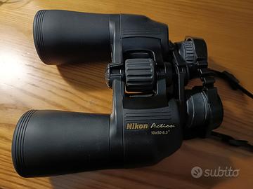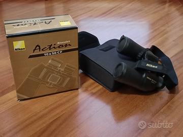 Binocolo Nikon Action 10x50 CF. In confezione originale, con custodia, cinghia e coprilenti.