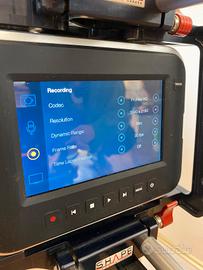 Videocamera Blackmagic Production Camera attacco EF Sensore 4K Super 35mm con Global Shutter Registra in 422 10 Bit in 4k con dynamic range di 13 stop (reali). Praticamente una camera da cinema. Display touch comodissimo, dotato di zebra, istogramma e focus picking. Insomma le immagini parlano da se, qualità assoluta. Tenuta maniacalmente. Imperfezioni: Graffi sul fondo dovuti da una vite di una piasta da cavalletto difettosa. Un graffio piccolissimo sul Display parte destra. ProRes 422 Codecs (HQ, 422, LT, & Proxy)Compressed CinemaDNG RAW (4000x2160)13 Stops of Dynamic RangeCanon EF Lens MountBuilt-In SSD Recorder6G-SDI Output for Ultra HD via One Cable5" Touchscreen LCD (800x480 Resolution) -Spallaccio / shoulder mount rig Shape WLB made in Canada totalmente modulabile Maniglie completamente regolabili, posizione della camera regolabile e cuscinetto poggiaspalla regolabile. Si può usare anche solamente la gabbia / cage con la maniglia superiore in quanto è modulare.
