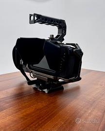Includo cage Tilta completo di basetta per canne da 15, parasole rimovibile, top handle e maniglia laterale con slot per NPF970 e 3 batterie Canon
