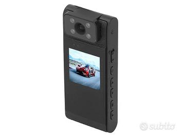 Videoregistratore Audio/Video indossabile (Bodycam), completo di cavo USB Tipo C, clip posteriore, manuale e confezione.