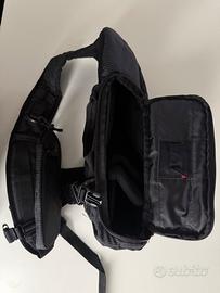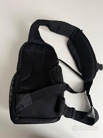 Zaino monospalla Canon EOS 300 EG nero ideale per trasportare e riporre l'attrezzatura della fotocamera reflex. Misure interne h. 32 cm w. 10 cm l. 18 cm. Usato solo una volta. Disponibile su Milano città.