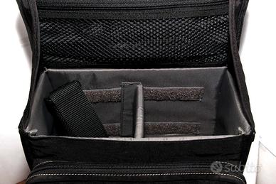 LA BORSA E' IMBOTTITA, HA UN DIVISORIO INTERNO SPOSTABILE E PERMETTE DI PORTARE UN CORREDO FOTOGRAFICO CON ACCESSORI.