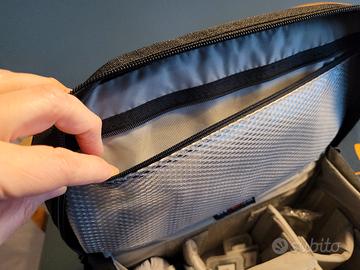 ottime condizioni. dotata di moltissime tasche a cerniera o rete, lunga tracolla. possibilità di agganciarla sul retro. divisori interni. misure 32x21 h 20 per altre informazioni o foto chiedere vendo anche accessori, D80 e 2 obiettivi
