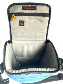 Birsa fotografica Lowepro Toploader Zoom 55 AW. Colore blue marino. custodia a fondina progettata per ospitare una reflex con obiettivo zoom montato, Dotata di tracolla regolabile e asola per il fissaggio alla cintura. In ottime condizioni