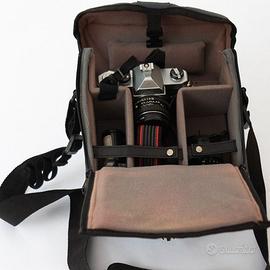 Interno capiente, adatto per fotocamere analogiche/digitali e 2–3 obiettivi.
