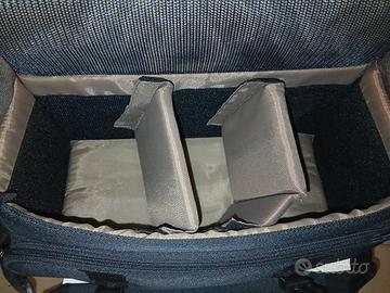 Borsa fotografica imbottita progettata per il trasporto sicuro di macchine fotografiche, obiettivi e accessori. Dispone di divisori interni in schiuma imbottiti e rimovibili, che possono essere riposizionati tramite strappi per personalizzare lo spazio in base alla propria attrezzatura. L'imbottitura spessa offre una protezione contro urti e cadute accidentali.