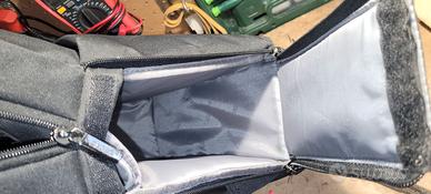 Interno ben organizzato con scomparti imbottiti per reflex, mirrorless, obiettivi e accessori.