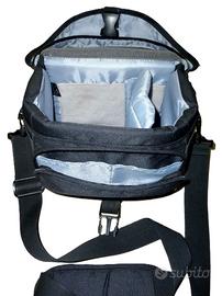 Borsa fotografica Panama Maxima 120, colore nero - dimensioni interne: 200x160x120mm ; con scomparto principale con chiusura a cerniera e tasca frontale per accessori con cerniera; cinghia con comodo spallaccio. Come nuova.