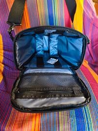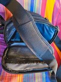 Comoda, leggera e resistente, per cambio misura vendo borsa per fotocamera reporter con 2 divisori interni, 2 tasche esterne + 1 interna con tracolla regolabile, praticamente nuova.