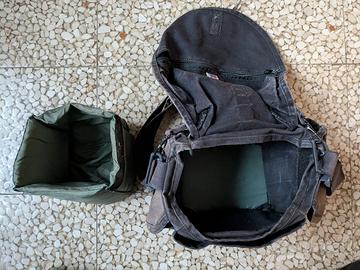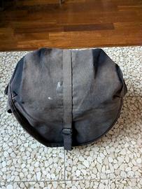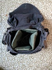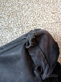 usata con segni di usura, scolorita , (andrebbe fatto un lavaggio ) tessuto in buone condizioni, un buco, riparabile tasca laterale, cinghia sfilacciata, tiene senza problemi, sostituibile con prodotto original