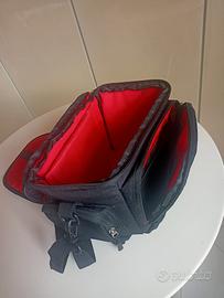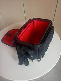 Vendo borsa fotografica come nuova di colore nero all'esterno, rossa all'interno, capienza giusta per una macchina reflex o mirrorless più due obiettivi. sono presenti tre tasche esterne.