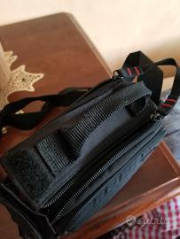 Tasca frontale con zip per schede SD, batterie e cavi.