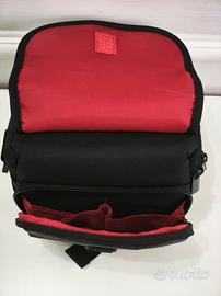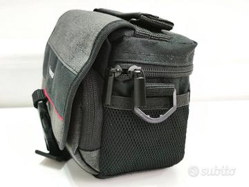 Picccola borsa fotografica, per macchine compatte o mirrorles entry level, fome r100 o R50. Cinchia per trasporto, tasca anteriore grande e due taschine laterali, ottima per viaggio. Nuova mai usata.