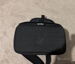 Custodia professionale per fotocamera con tracolla regolabile e imbottitura protettiva.