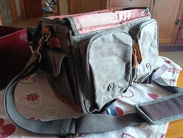 Vendo borsa multiuso in tessuto impermeabile mai usata. Presenta numerose tasche. La borsa è imbottita ma un ulteriore imbottitura asportabile con divisori aggiuntivi consente il trasporto di attrezzatura fotografica. Consegna a mano. Euro 20.