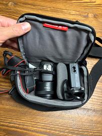 Taglia XS . 2,2lt . Può contenere tranquillamente una fotocamera Mirrorles tipo canon eos r100 con obbiettivo montato e un separatore imbottito per piccoli oggetti tipo caricatore, schede sd, batteria di riserva.