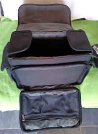 Borsa fotografica Reporter, prodotta dalla FIAB. Per il trasporto sicuro di macchine fotografiche e accessori, in materiale imbottito antiurto, con 2 piccole tasche laterali. In ottimo stato, unico neo: assente il passante metallico per la tracolla, facilmente reperibile.