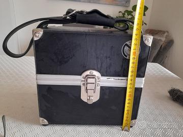 Borsa fotografica in pelle rigita con armatura perimetrale in alluminio , munita di tracolla con qualche segno di usura nella spugna interna (relativa agli anni ) possibilita di chiusura tramite lucchetto