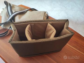 Vendo bellissima borsa fotografica tracolla artigianale Costruzione in canvas, quindi robusta ma allo stesso tempo morbidissima. Chiusura con zip e velcro, colore beige/sabbia. Misure 35x30x15. Scomparto imbottito estraibile dove riporre fotocamera e obiettivi, protetti e separati da scomparti con attacco in velcro per regolare gli scomparti secondo le proprie esigenze. Tracolla fotografica che sembra una tracolla normale, per chi non vuole dare troppo nell'occhio o per chi vuole usarla come borsa normale togliendo l'imbottitura interna. Ideale per street photography. Gentilmente, offro e chiedo massima serietà