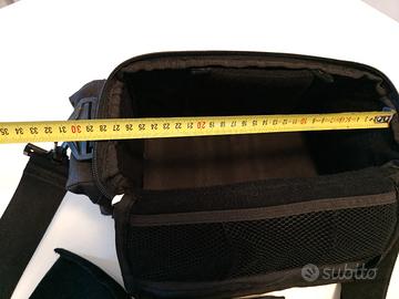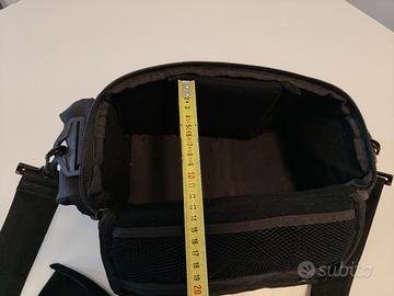 Vendo borsa fotografica completa di divisori interni, dimensioni circa 27x12. Esteticamente in buone condizioni, è usurato solamente il poggia spalla (come si vede in foto). Ha 2 tasche laterali dimensioni 10x3
