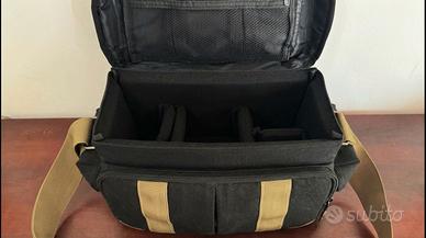 Causa imminente trasferimento all'estero, vendo borsa a tracolla per fotocamera in stile vintage/canvas. Dettagli del prodotto: Materiale: Tela (canvas) robusta e resistente, color nero con cinghie e dettagli a contrasto. Capienza: Interno molto spazioso e imbottito, dotato di divisori regolabili in velcro (può contenere comodamente un corpo macchina Reflex/Mirrorless + 1/2 obiettivi o flash). Scomparti: Varie tasche extra (frontale e interna a rete) per accessori, schede SD e batterie. Tracolla larga e regolabile con poggiaspalla imbottito per il massimo comfort. Stato: In ottime condizioni, integra e perfettamente funzionale. ⚠️ REGOLE PER LA VENDITA: Spedizioni sicure: Utilizzo ESCLUSIVAMENTE il sistema di pagamento e spedizione ufficiale della piattaforma. Non accetto transazioni esterne. A garanzia di entrambi: Registro un video integrale e senza tagli di ogni singolo imballaggio prima di spedire. Ritiro a mano: Disponibile a Prato. Pagamento in contanti sul posto dopo aver visionato l'oggetto.