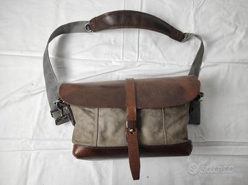 Borsa fotografica Wotancraft Messanger in canvas cerato verde e pelle marrone di altissima qualità. In questi colori il modello è fuori produzione ed è davvero difficile reperirla sul mercato.