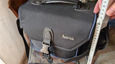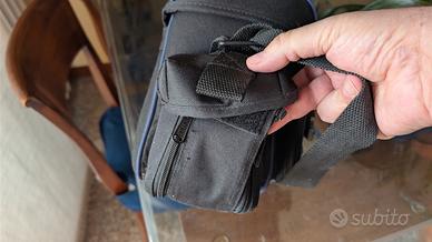 vendo borsa per telecamera o macchina fotografica in buone condizioni. Comprende tasche laterali e centrale. Aprendola si ha un sottofondo di separazione.