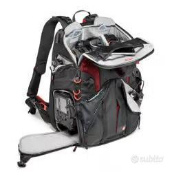 Zaino monospalla con spazio per 1/2corpi macchina e diversi obiettivi. Ha divisori flessibili ed intercambiabili più alcune tasche ed attacchi esterni per treppiede.