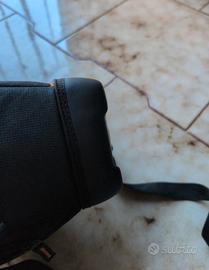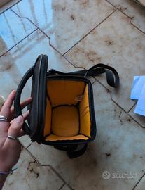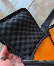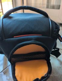 Vendo questa comodissima e robusta borsa per fotocamera (modello "holster" / a fondina) dell'affidabile marchio Case Logic. È l'ideale per proteggere la vostra reflex o mirrorless con obiettivo montato, perfetta per viaggi, escursioni o semplici passeggiate. DETTAGLI ARTICOLO: Marca: Case Logic (originale, con logo gommato in rilievo). Colore: Esterno nero in tessuto tecnico texturizzato, con dettagli e tira-zip arancioni. L'interno (come si intravede) ha dettagli arancioni/gialli. Design: Modello a fondina. Ha una base rigida e rinforzata per appoggiarla in sicurezza ovunque. Scomparti: Scomparto principale superiore con zip a doppia via + comoda tasca frontale con zip (perfetta per schede SD, cavetti o una batteria di scorta). Trasporto: Maniglia superiore imbottita per la presa a mano e comoda tracolla regolabile inclusa. Materiale: Nylon Etilene vinil acetato (EVA) (esternamente)/ memory foam (internamente). Base con rivestimento eva impermeabile per resistere agli agenti atmosferici e collocare la custodia in verticale. Imbottitura interna in memory foam per proteggere il delicato schermo LCD. É COMPATIBILE CON LA MAGGIOR PARTE DI CAMERE CON OBBIETTIVO (IO L'HO USATA CON CANON EOS 2000D E FUJIFILM XT5) Le condizioni sono eccellenti / come nuovo. Come potete vedere dalle foto dettagliate, il tessuto non presenta strappi, scuciture o segni di usura. Le cerniere sono intatte e i ganci della tracolla sono perfetti. È stata tenuta con molta cura. Solo il logo é leggermente rovinato ma non intacca né l'estetica, né la funzionalità della borsa. #caselogic #borsafotocamera #fotografia #reflex #mirrorless #canon #nikon #sony #custodiafotocamera #cameraaccessories #camerabag #holsterbag #accessori #tech #photographylover