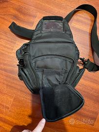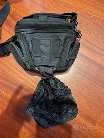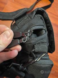 Borsa molto robusta ricca di tasche e fodera protettiva per la pioggia. Una delle 2 cerniere di chiusura è rotta ma si chiude completamente anche con una sola cerniera.
