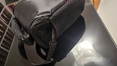 Borsello per macchina fotografica Reflex/Mirrorless Canon/Nikon/Sony, pari al nuovo. Impermeabile, ultra imbottita, con tracolla e sacche laterali. Mai usata in quanto ne ho comprata una più piccola per fotocamera con obiettivo a focale fissa. L'avevo comprata per la fotocamera con obiettivo 75-300mm Canon, che andava bene.