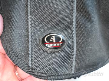 causa inutilizzo vendo borsa Tamrac a tracolla per obiettivi. dimensioni come da foto. 3 scomparti per obiettivi, altri scomparti con cerniera per altri accessori, due reti laterali e altro scomparto posteriore. usata pochissimo praticamente nuova.