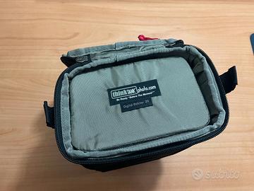 Vendo borsa/tracolla per reflex della Think Tank modello Digital Holster 20, utile per trasportare la reflex con l'obiettivo montato. La borsa può contenere un corpo macchina standard con obiettivo zoom montato.