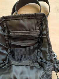 Usata ma in ordine ben imbottita e con tracolla, anello per cintura e tasche porta accessori . Andate a macchine compatte NO REFLEX O MIRRORLESS , ritiro al mio domicilio già lavata e pulita in lavatrice. Dimensioni interne per la macchina 18x9x6 cm, poi ci sono le tasche per gli accessori.