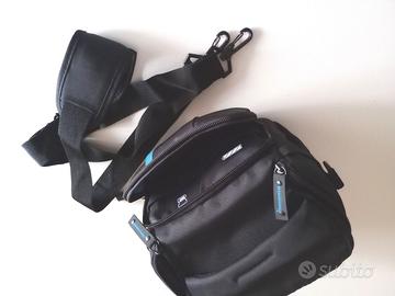 Borsa porta macchina fotografica reflex -con tracolla e maniglia - marca Hama -dimensioni cm 18 x 14 - con vari scomparti - separatore interno rimovibile - sacca antipioggia in tasca esterna (vedi foto) - tasche interne porta batterie e porta card - 2 tasche esterne laterali - poco usata e in ottimo stato