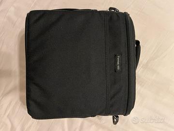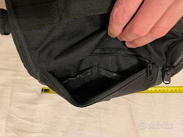 Ci stanno comodamente una reflex con obiettivo innestato più un oviettivo supplementare. Io ci mettevo una nikon f3 con due ottiche fisse (85 e 25) con una decina di rullini.